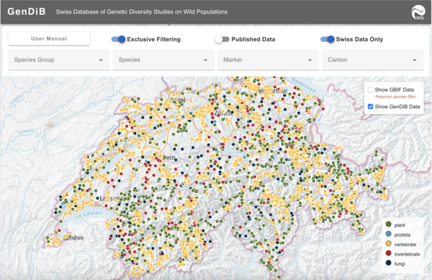 Als Konzeptnachweis sammeln wir veröffentlichte und unveröffentlichte Studien zur intraspezifischen genetischen Vielfalt in der Schweiz, basierend auf Literaturrecherchen und persönlichen Anfragen. Wir standardisieren die Metadaten dieser Studien und stellen diese Informationen in einer interaktiven Übersichtskarte der Schweiz frei zur Verfügung.